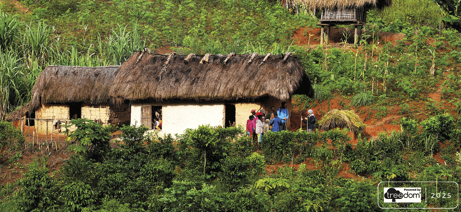 Soutenus par l'entreprise Treedom, une organisation qui vous permet de planter des arbres à distance et de suivre l'histoire du projet en ligne, nous avons acheté 140 cacaoyers qui ont été plantés par des agriculteurs camerounais dans le cadre d'un des projets d'agroforesterie soutenus par l'entreprise.