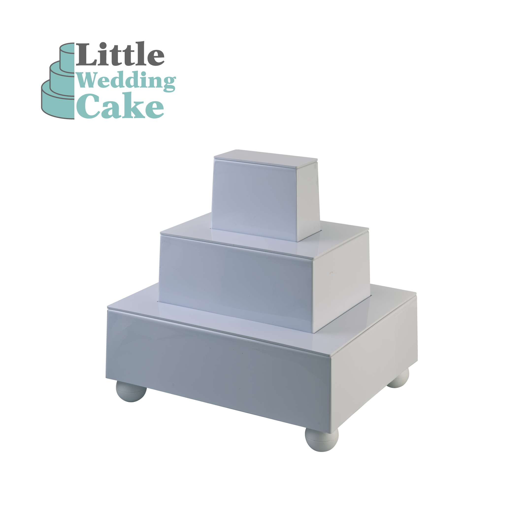 Jeu complet de tambours rectangulaires en plastique pour la réalisation de petits mais gracieux gâteaux de mariage ou de cérémonie, pieds compris.