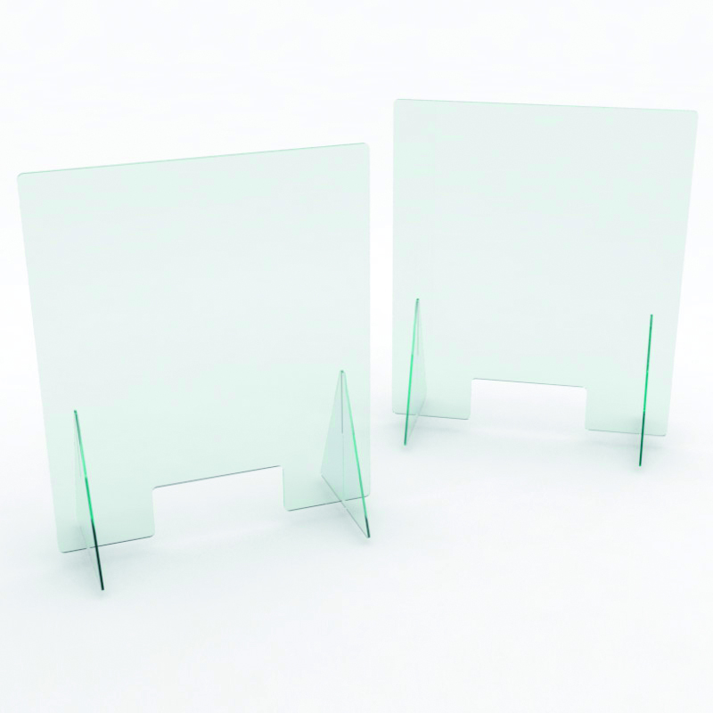 Panneau de protection en plexiglas pour les tables ou pour créer des espaces de travail sécurisés. La forme des supports et du panneau permet d'optimiser l'espace dans chaque situation et la composition modulaire pour répondre à des besoins spécifiques. Avec trou 25x15cm.