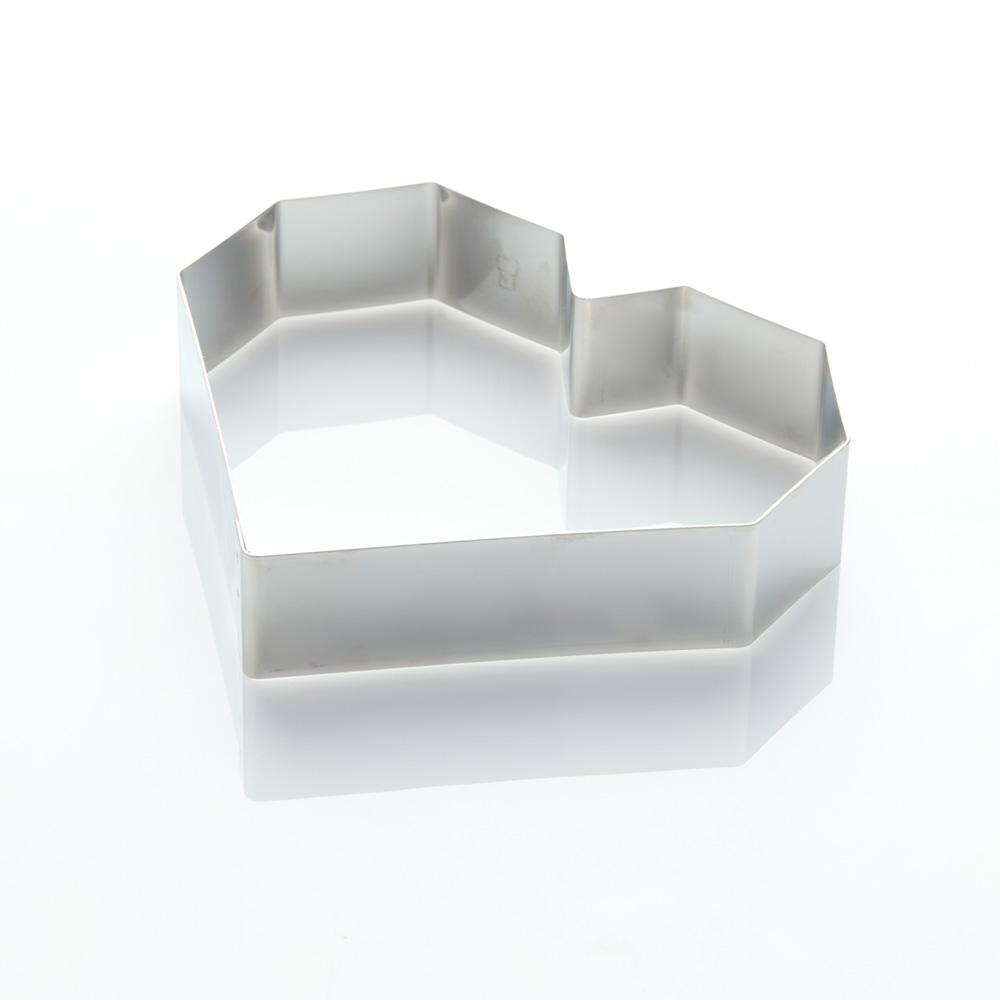 Bande en acier inoxydable en forme de cœur, parfaite pour la cuisson et la congélation des desserts modernes.