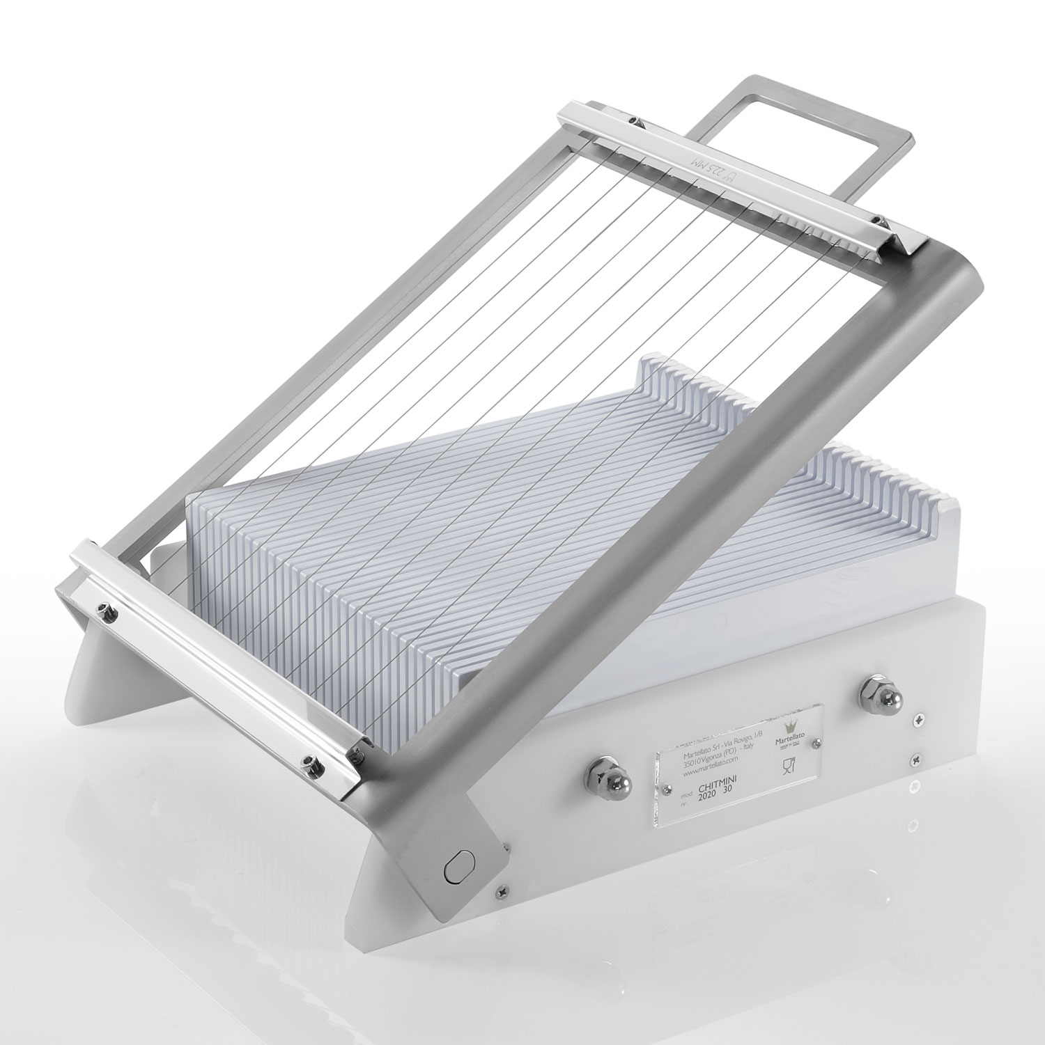 La table de découpe mesure 25 x 28 cm, la mini guitare est donc adaptée aux petites productions et convient aux restaurants, pâtisseries et glaciers. Sa petite taille permet de la ranger facilement dans les espaces restreints.