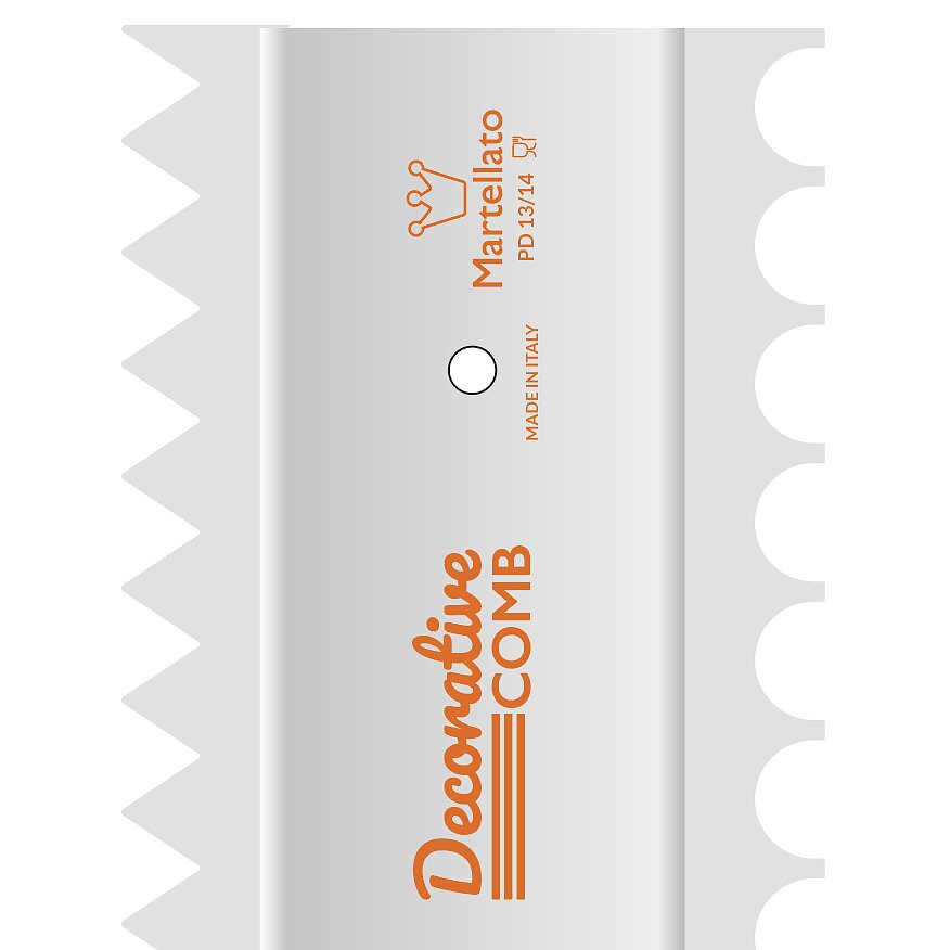 Peigne, en plastique et caoutchouc, conçu pour la réalisation de décorations en chocolat ou en biscuits. Chaque peigne comporte un double motif pour la décoration.