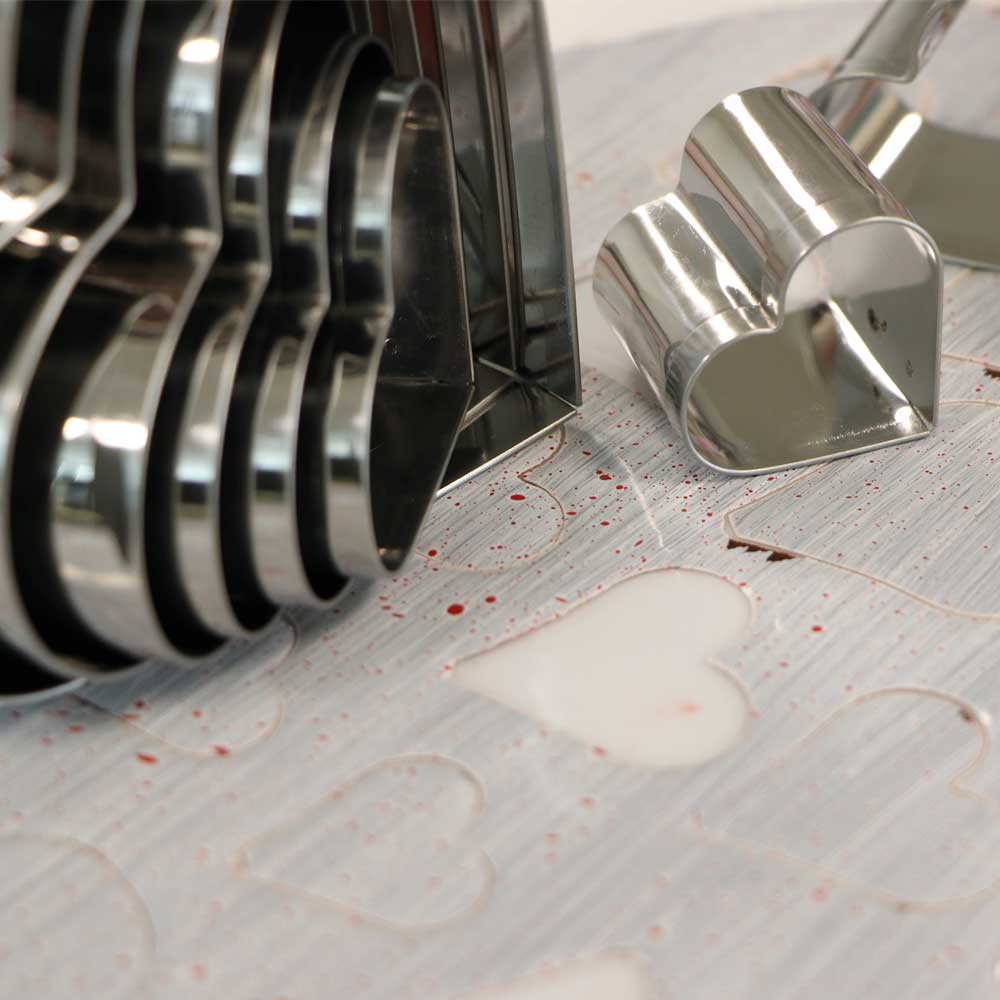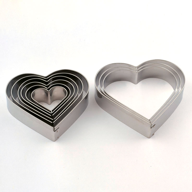 Jeu d'emporte-pièces en acier inoxydable en forme de coeur avec des bords très droits pour des coupes nettes et précises. La boîte (en acier) contient 9 moules de 36x36mm, 43x43mm, 52x52mm, 60x60mm, 70x70mm, 80x80mm, 90x90mm, 100x100mm, 110x110mm.