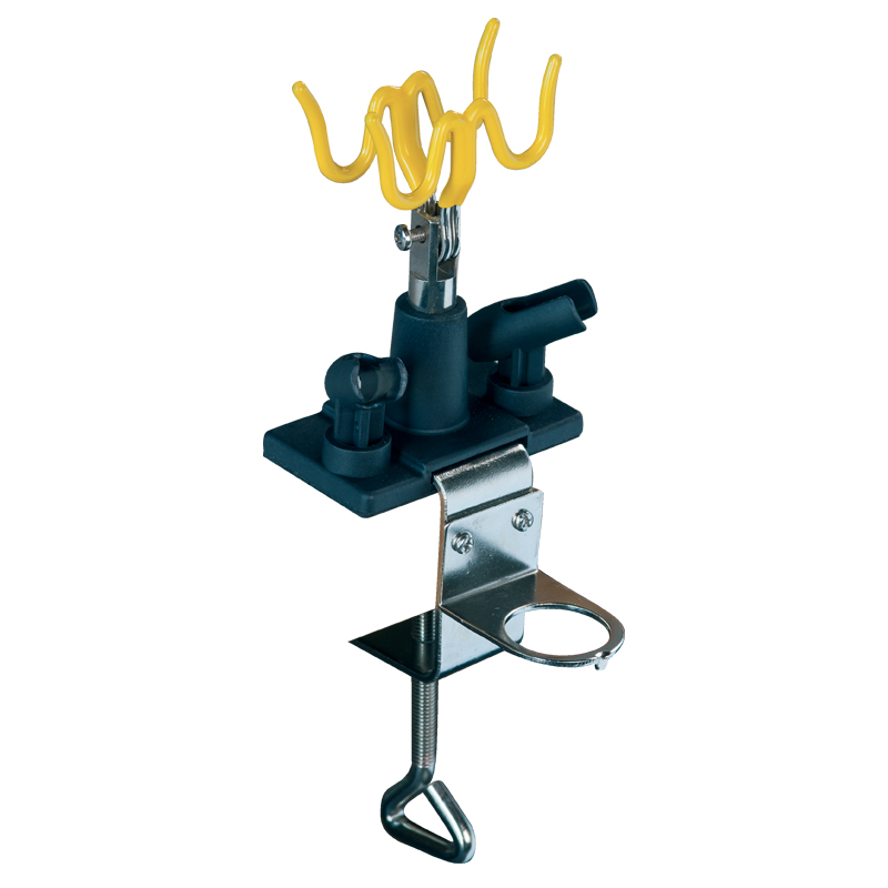 Support de banc pour stylo aérographe. Conçu pour maintenir l'aérographe à l'horizontale lorsqu'il n'est pas utilisé. Comprend un support d'établi.